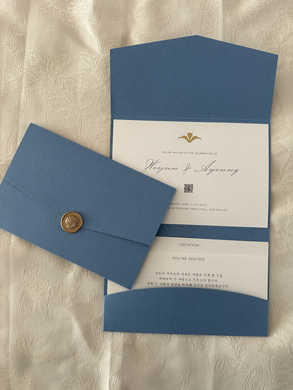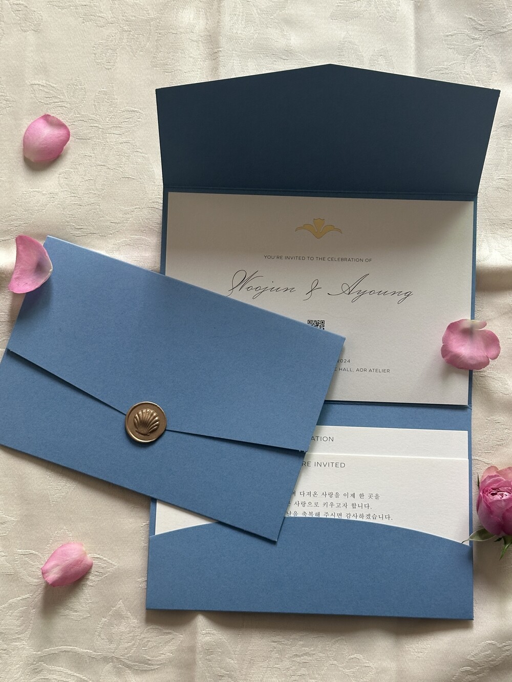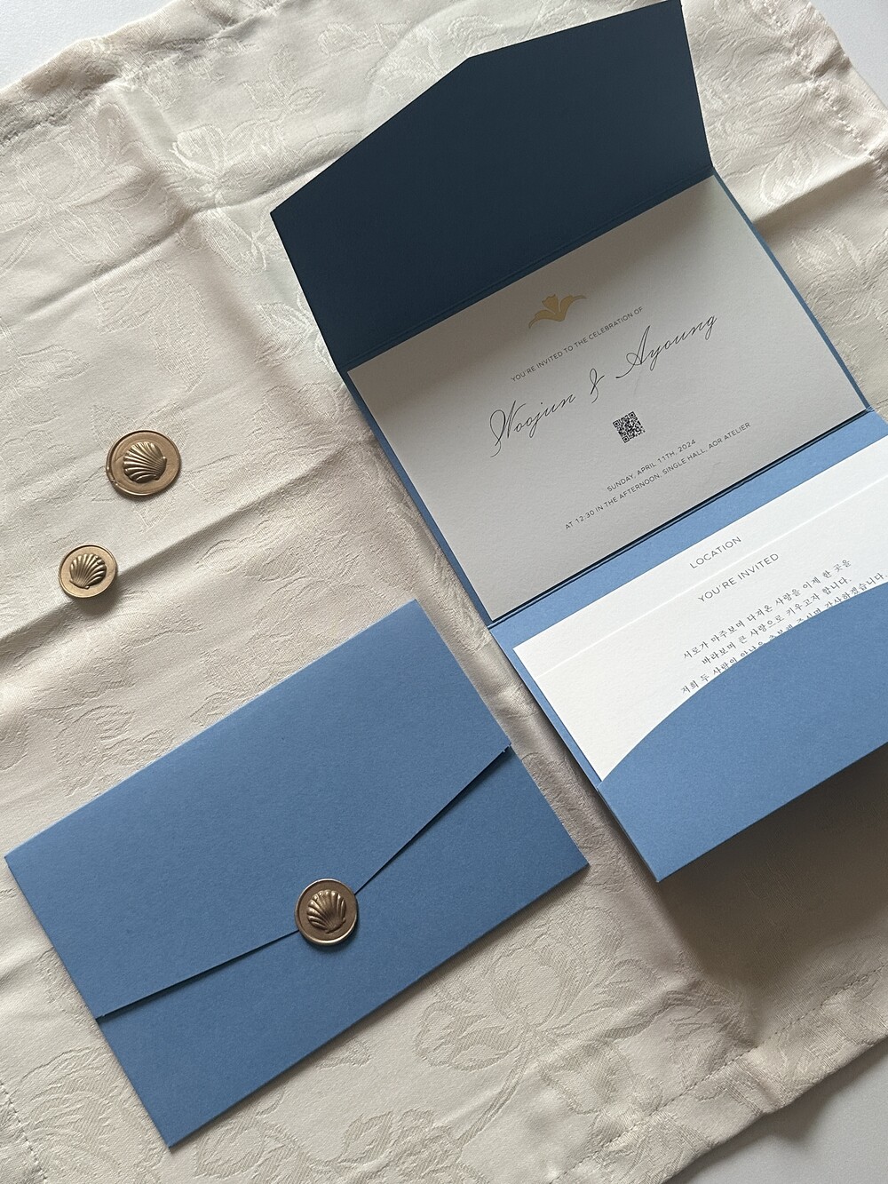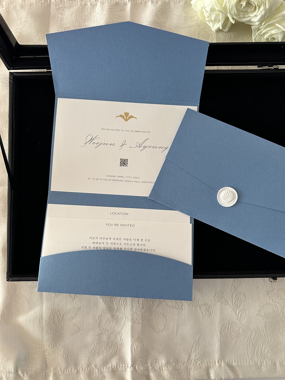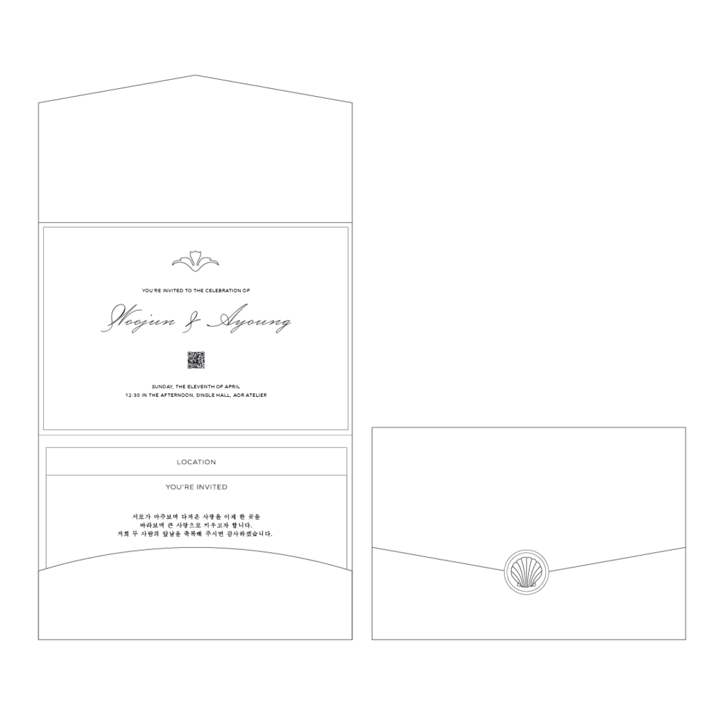 3. 특이사항 : 속지는 접착되지 않은 상태로 배송됩니다. 해당 디자인은 트라이폴드 형태의 청첩장으로 별도 봉투는 제공되지 않습니다.