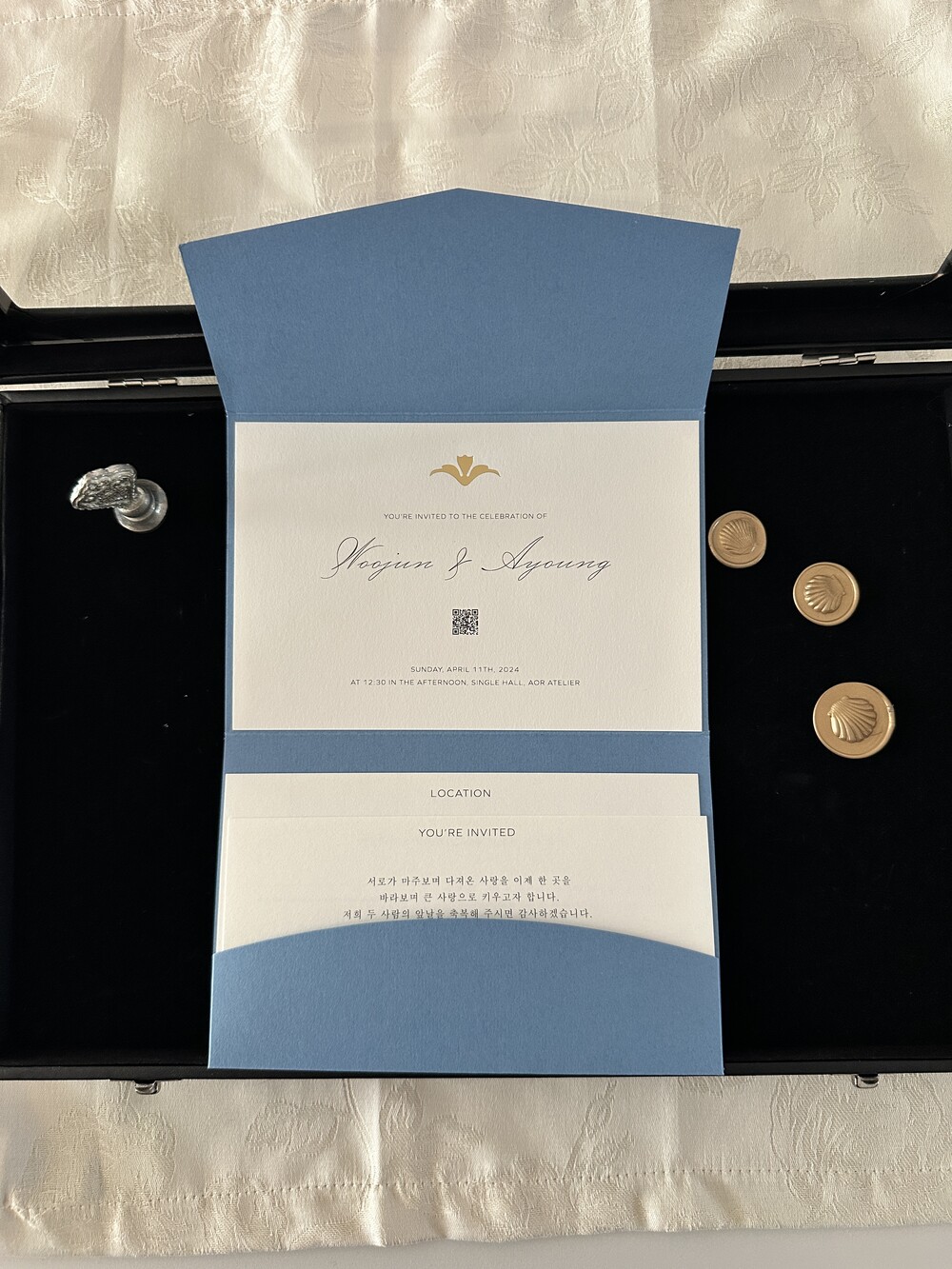· 신부님 신랑님 성함 순서변경 가능, QR코드 삽입을 원하지 않으시면 삭제 가능합니다. 주문서 작성 시 선택해주시면 되며, 이 경우 촬영 된 샘플 이미지와 시안이 달라질 수 있습니다.