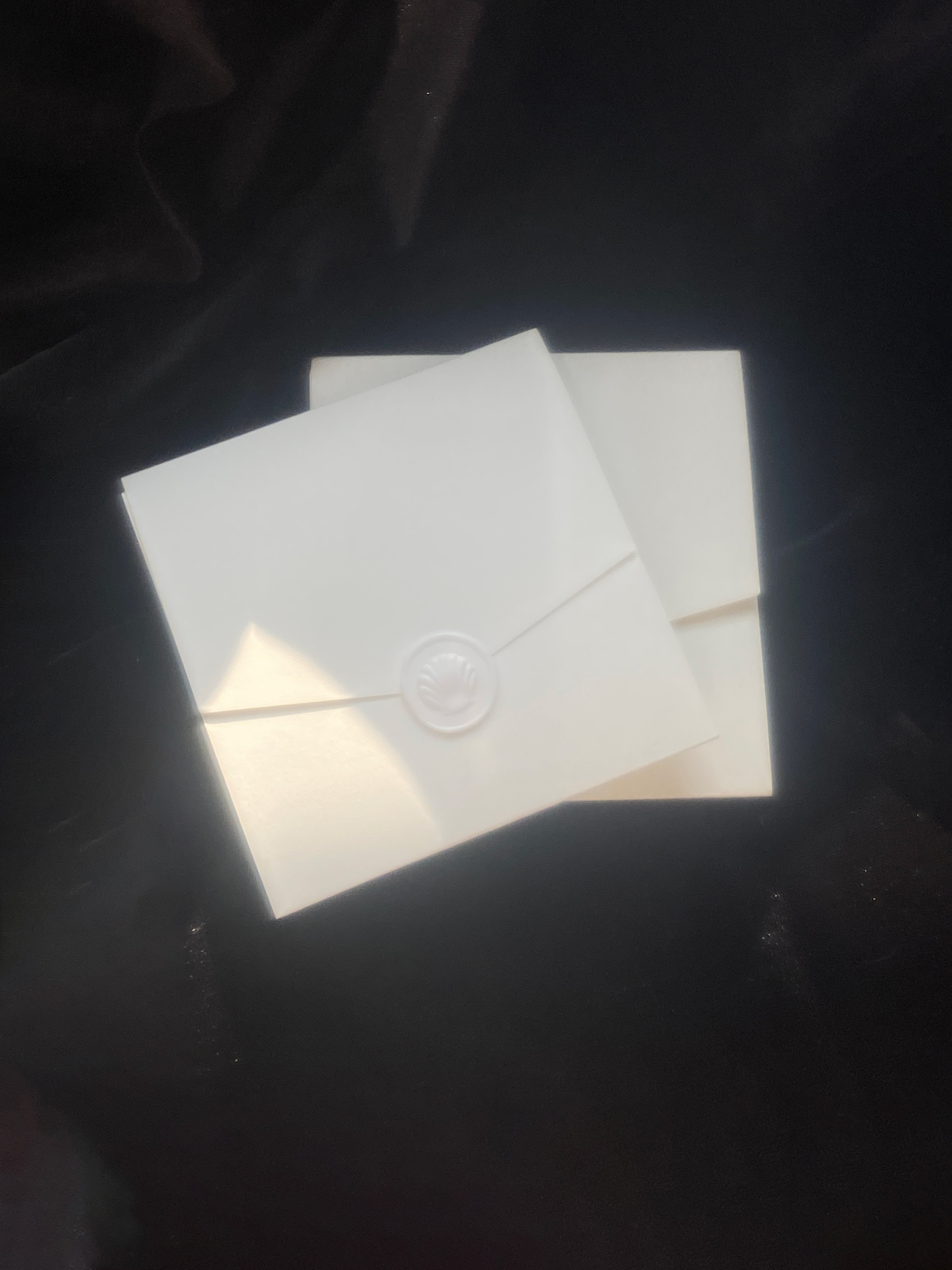 2. 기본 구성 : 겉지 + 속지(3장) + 실링왁스 스티커(화이트 25mm)