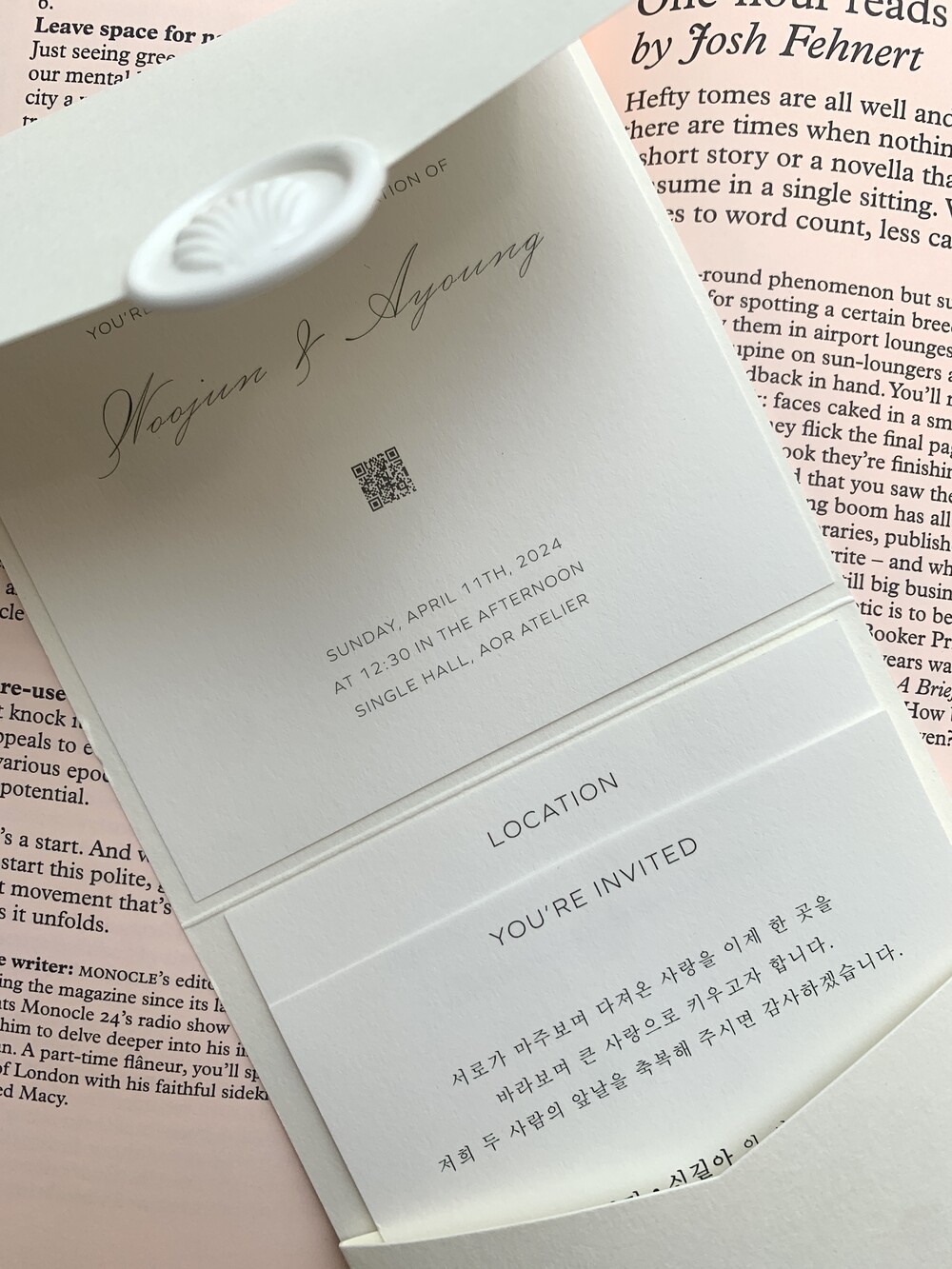 AOR LETTERS 청첩장의 모든 종이는 재활용이 가능한 비코팅지로 제작됩니다.