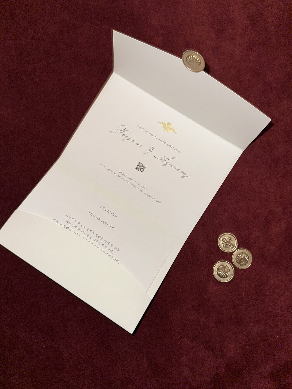 · 신부님 신랑님 성함 순서변경 가능, QR코드 삽입을 원하지 않으시면 삭제 가능합니다. 주문서 작성 시 선택해주시면 되며, 이 경우 촬영 된 샘플 이미지와 시안이 달라질 수 있습니다.