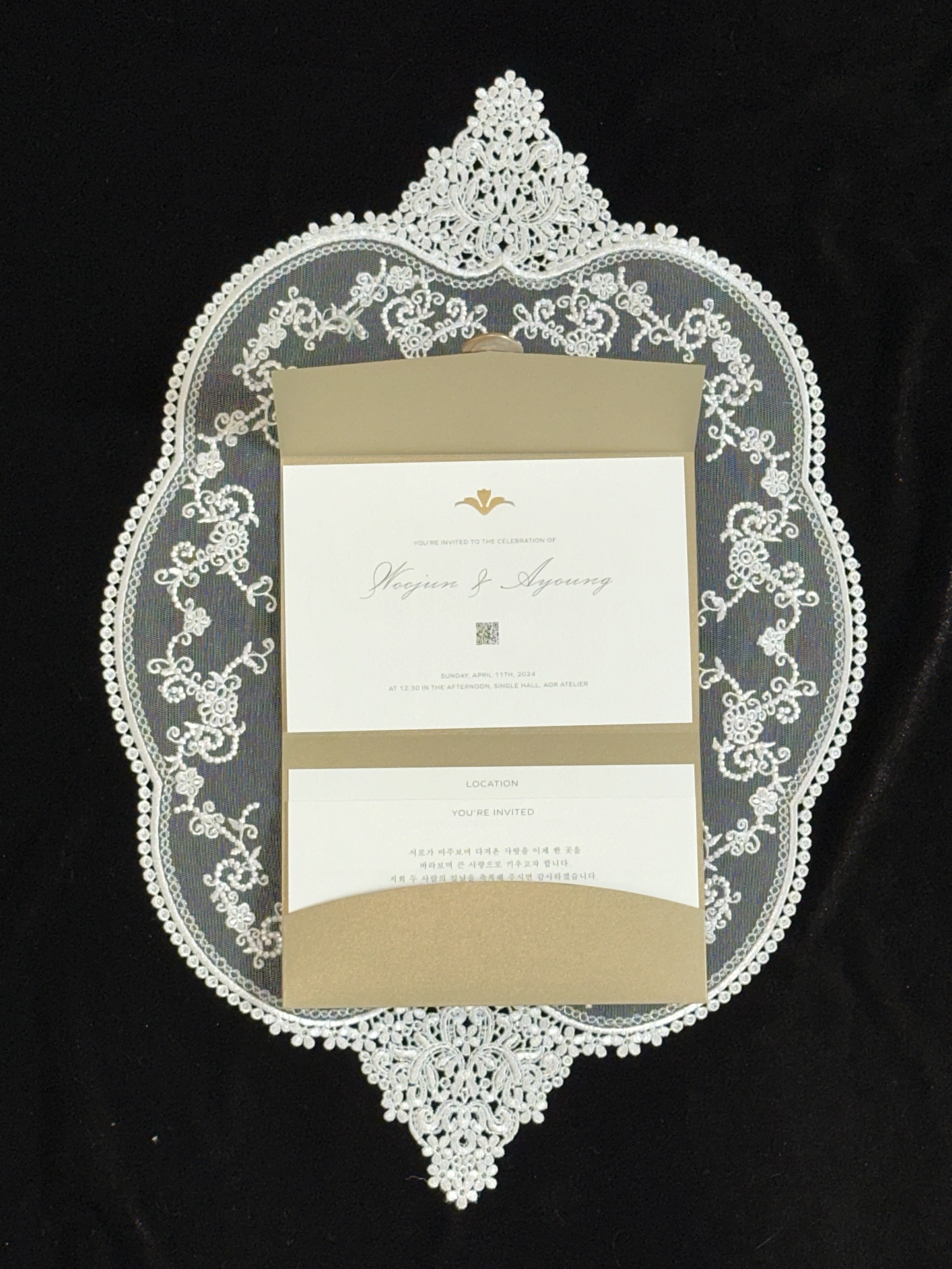 3. 특이사항 : 속지는 접착되지 않은 상태로 배송됩니다. 해당 디자인은 트라이폴드 형태의 청첩장으로 별도 봉투는 제공되지 않습니다.